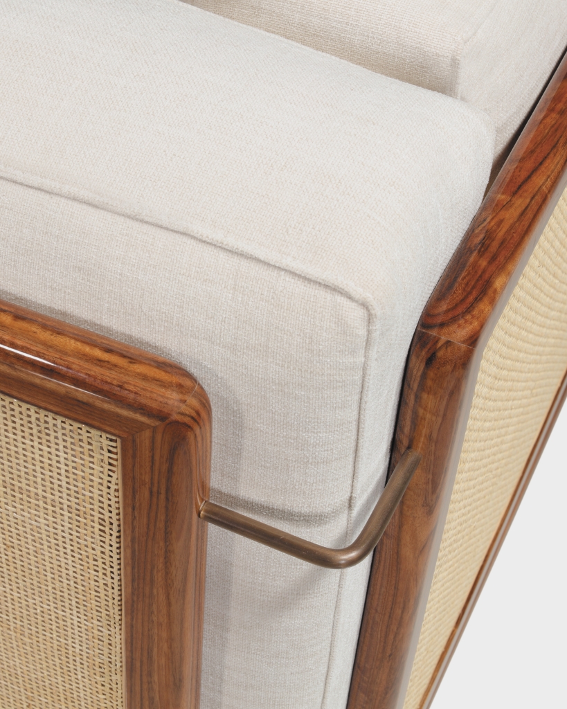 Structure in solid matt varnish-finished natural oak. Seat and backrest in woven rattan
